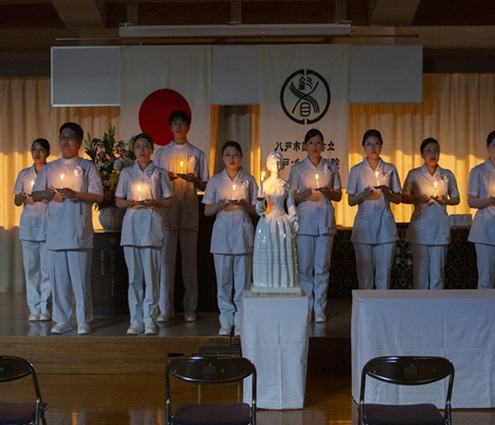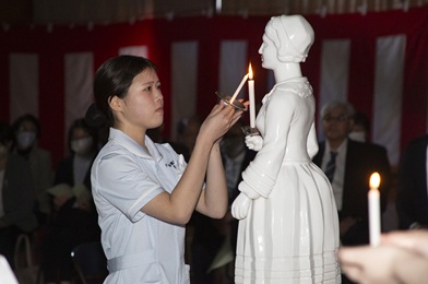 (以下、学院長式辞より抜粋) 本日の継灯式は、皆さんが臨地実習へと歩みを進めるにあたり、看護の道を志す者と しての自覚と責任を新たにする、極めて意義深い節目であります。 ナイチンゲールの崇高なる精神を胸に、キャンドルの灯を受け継がれたこの瞬間は、 皆さんの看護人生において、かえがえのない原点となることでしょう。