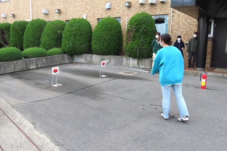 地震後、火災が生じたことを想定した避難訓練を実施しました。 避難経路の確認、3階の救助袋からの避難、消火器使用による消火指導を受けました。 災害はいつ起こるか分かりません。有事に備え、人命保護と防火意識を高めたいと思います。